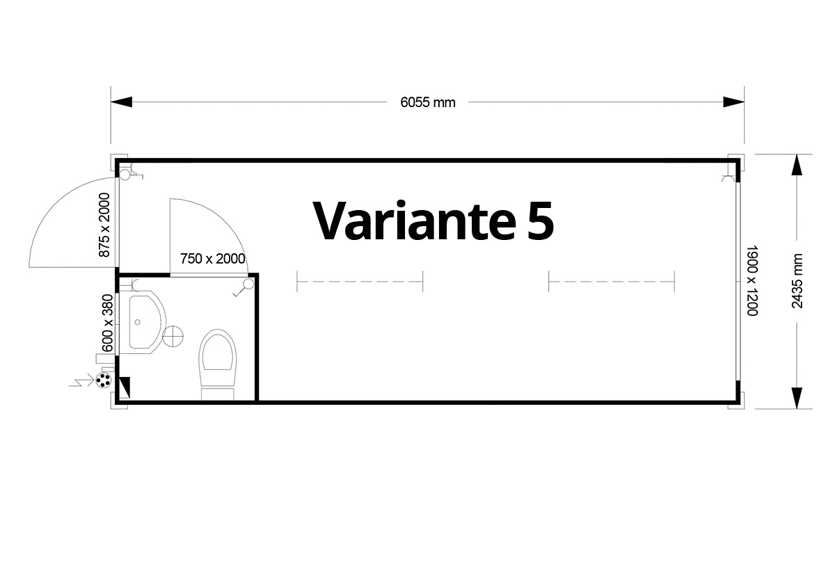 Konfigurierter Bürocontainer isoliert, 6055 x 2435 x 2600 mm (L x B x H), inkl. Elektropaket, Heizung (E-Wandkonvektor), Fi-Schutzschalter, Außenwandlackierung vollverzinkt, in RAL 9002 (grau-weiß) lackiert