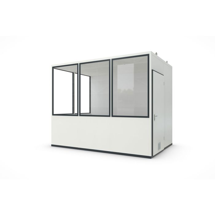 Dieses Hallenbüro / Meisterbüro eignet sich optimal als Einstiegsmodell für Unternehmen, die zusätzliche Aufenthaltsräume oder Hallenbüros im Innenbereich schaffen möchten. Dank seiner standardisierten Bauweise und reduzierten Gestaltungsmöglichkeiten ist diese Version kostengünstig und schnell lieferbar, besonders wenn es eilt. Die robuste Stahlkonstruktion ermöglicht es zudem, das System dank Kranösen nachträglich zu versetzen, wodurch Sie sich nicht auf dauerhafte bauliche Veränderungen festlegen müssen. Zwei Elektropakete stehen zur Auswahl, um Licht, Strom und Klimatisierung sicherzustellen.