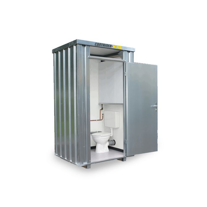 Der kleine WC-Container ist in verzinkter oder verzinkt/lackierter Ausführung erhältlich und somit besonders langlebig und wetterbeständig.