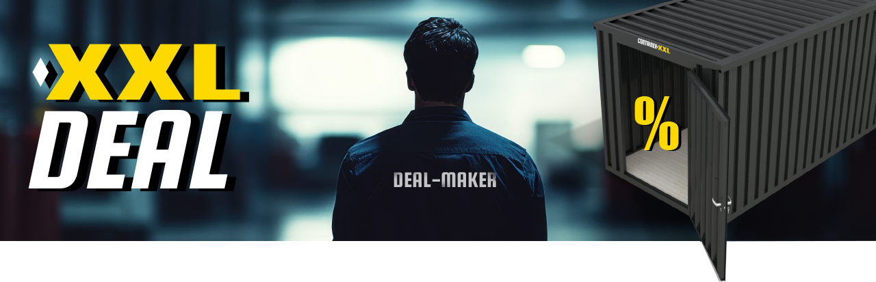 Lagercontainer S – 4 qm, H2150 x B2100 x T2170 mm, verzinkt, mit Holzfußboden, 1270 mm Einflügeltür mittig in Breitseite, zerlegt